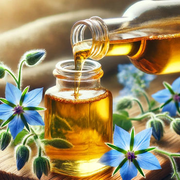 Borage oil, also known as "starflower oil," is a powerhouse for both beauty and health, thanks to its unique properties. Rich in gamma-linolenic acid (GLA), it provides deep hydration, helping to maintain healthy, moisturized skin. Borage oil is effective in addressing common skin issues like inflammation, dryness, and eczema.